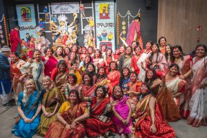 Cultural performances take place in the evening and are attended by many dignitaries from the Embassy of India as well as invited guests from various cultural organisations. The day concludes with a festive dinner. On Sunday, the final day of the celebration, a traditional ceremony (sindur daan) marks the farewell to Goddess Durga, followed by a community dance called bhashan naach.